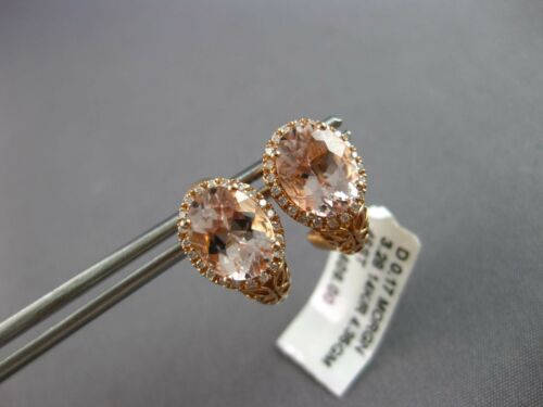 LARGE 14KT ROSE GOLD CLIP ON HANGING EARRINGS. 3D HALO FILIGREE FLOWER DESIGN. ROUND DIAMONDS ARE F/G COLOR, VSSI CLARITY .17 CARATS. AAA EXTRA FACETED OVAL MORGANITES ARE 3.28 CARATS. MEASURES 15mm X 9mm. WRITTEN APPRAISAL AVAILABLE. COMES IN A PRESENTABLE GIFT BOX.