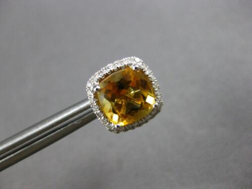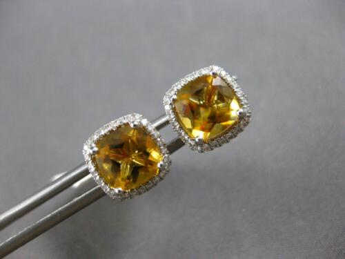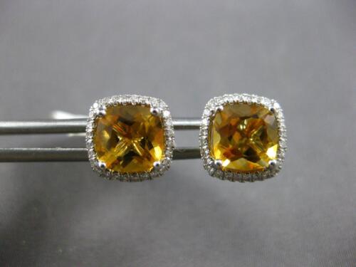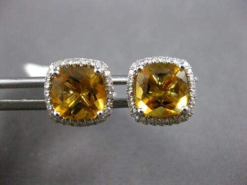 LARGE 18KT WHITE GOLD STUD EARRINGS. 3D SQUARE HALO DESIGN. ROUND DIAMONDS ARE F/G COLOR, VSSI CLARITY .28 CARATS. AAA EXTRA FACETED CUSHION CUT CITRINES ARE 3.65 CARATS. MEASURES 10mm WIDE. WRITTEN APPRAISAL AVAILABLE. COMES IN A PRESENTABLE GIFT BOX.