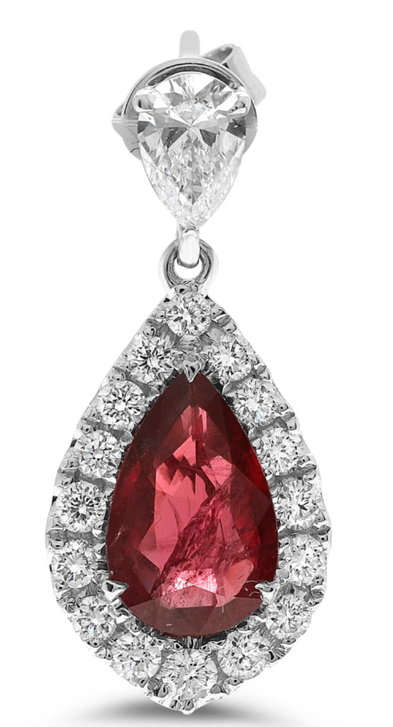LARGE 3.10CT DIAMOND & RUBY 18KT WHITE GOLD PEAR SHAPE & ROUND HANGING EARRINGS