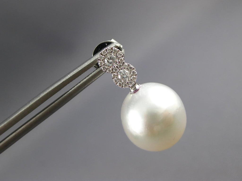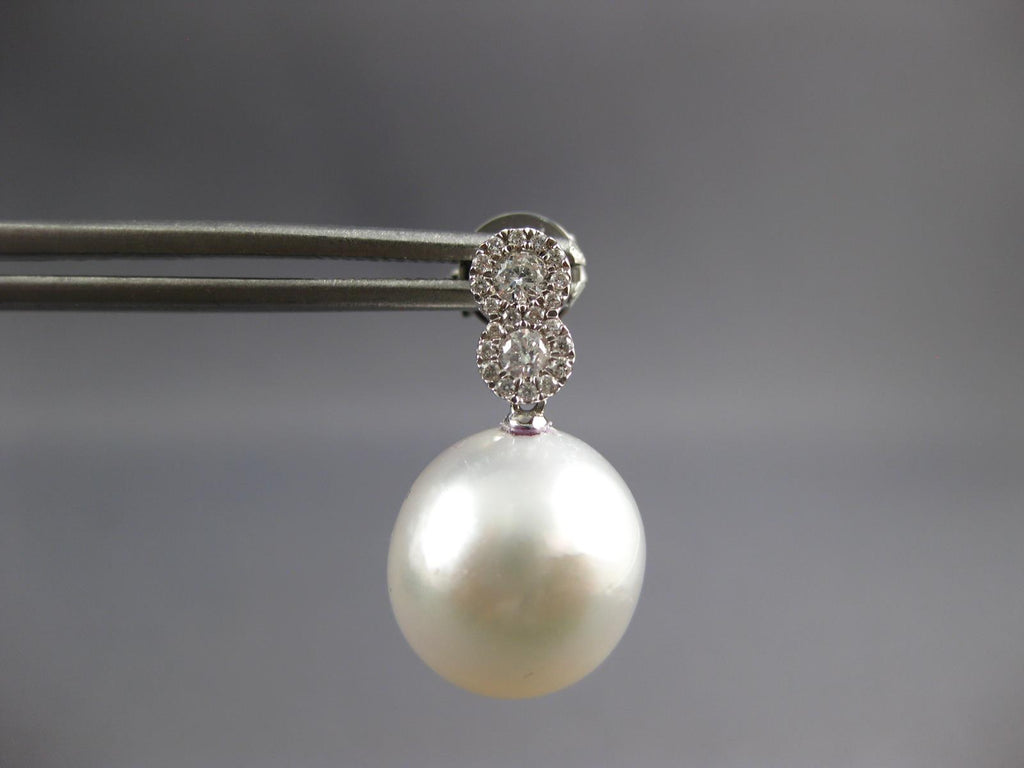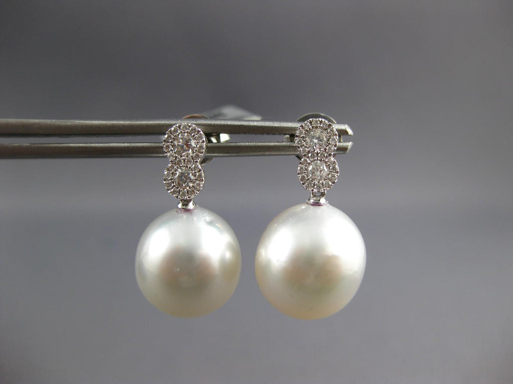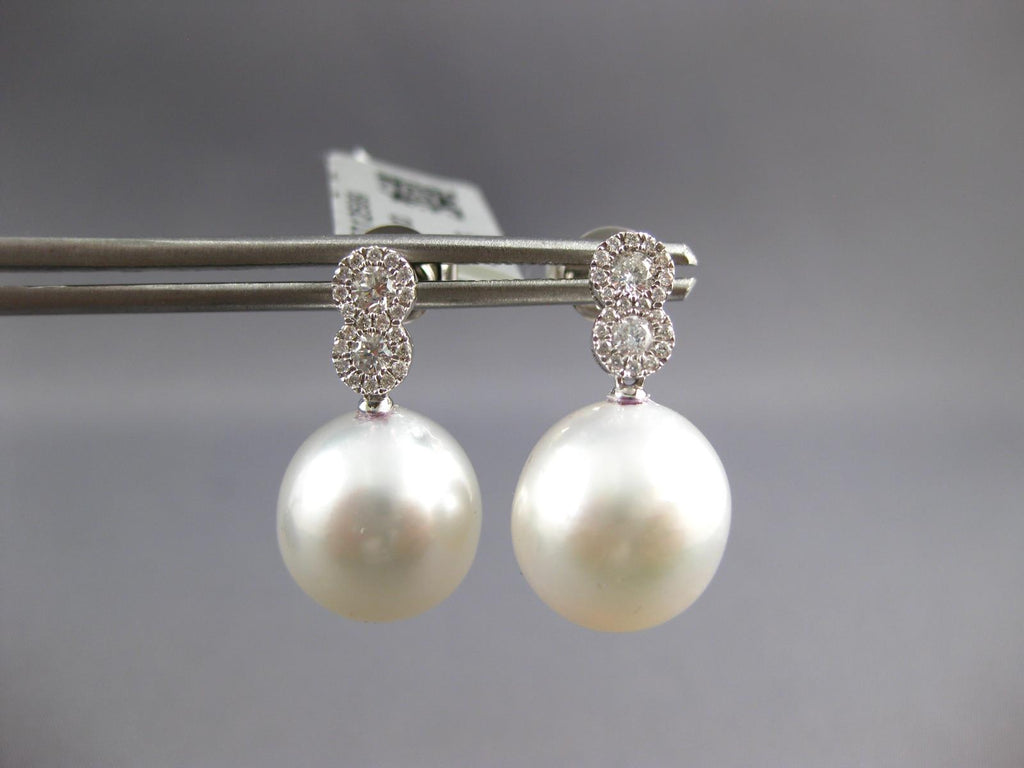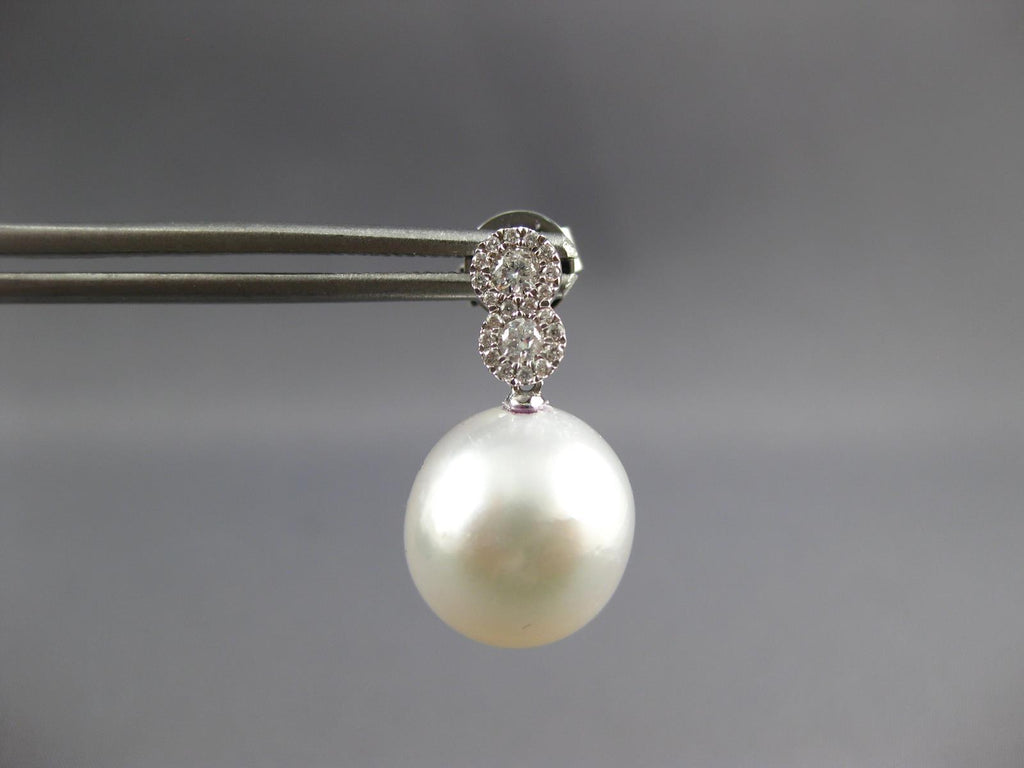 LARGE .32CT DIAMOND AAA SOUTH SEA PEARL 18K WHITE GOLD INFINITY HANGING EARRINGS