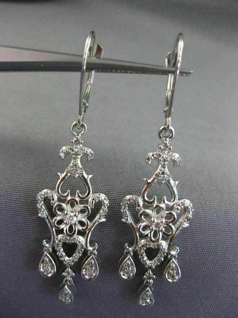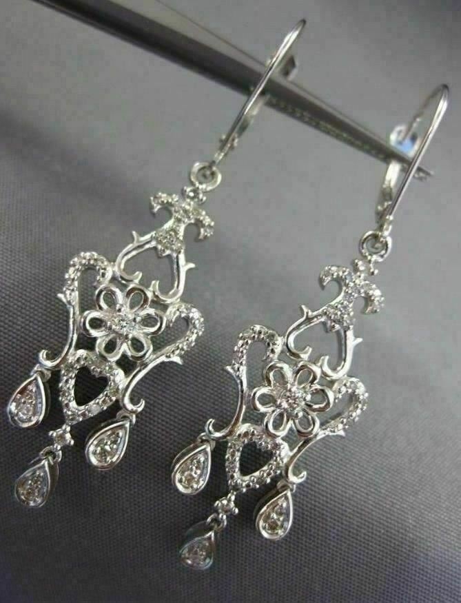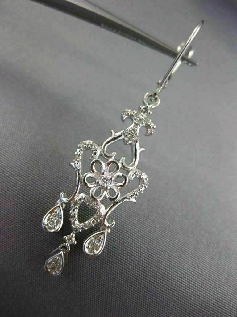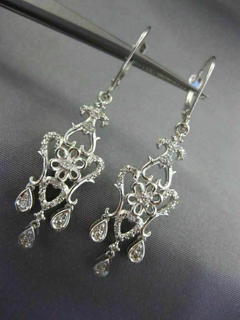 LARGE .33CT DIAMOND 14KT WHITE GOLD OPEN FILIGREE LEVER BACK CHANDELIER EARRINGS