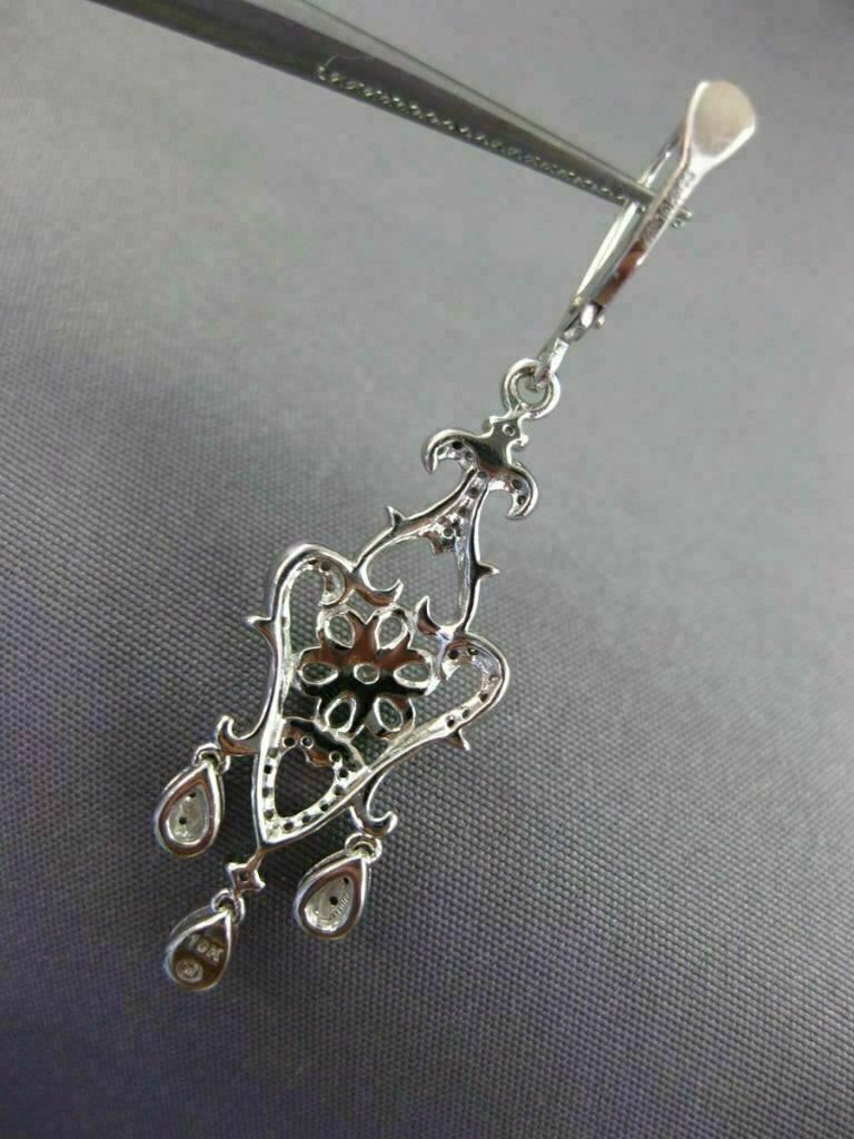 LARGE 14KT WHITE GOLD LEVERBACK EARRINGS. 3D OPEN FILIGREE HEART FLOWER TEAR DROP CHANDELIER DESIGN. DIAMONDS ARE F/G COLOR, VSSI CLARITY .33 CARATS. MEASURES 30MM X 9MM. WRITTEN APPRAISAL AVAILABLE. COMES IN A PRESENTABLE GIFT BOX.