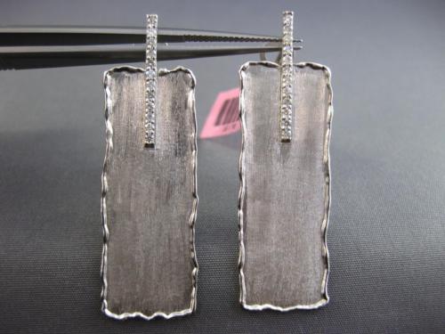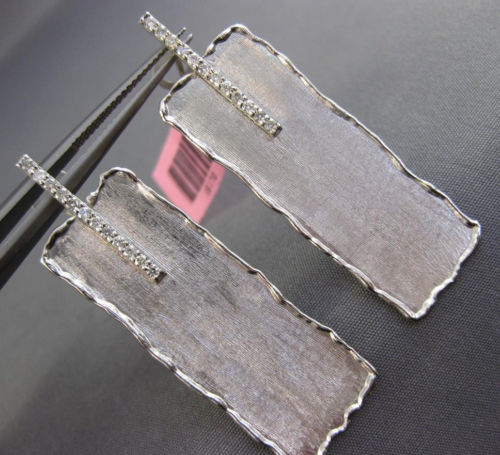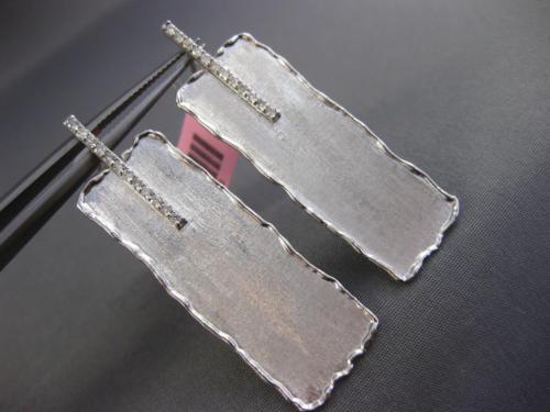 LARGE 14KT WHITE GOLD HANGING EARRINGS. 3D MATTE AND SHINY HAMMERED RECTANGULAR DESIGN. DIAMONDS ARE F/G COLOR, VSSI CLARITY .35 CARATS. MEASURES 46mm X 14mm. WRITTEN APPRAISAL AVAILABLE. COMES IN A PRESENTABLE GIFT BOX.