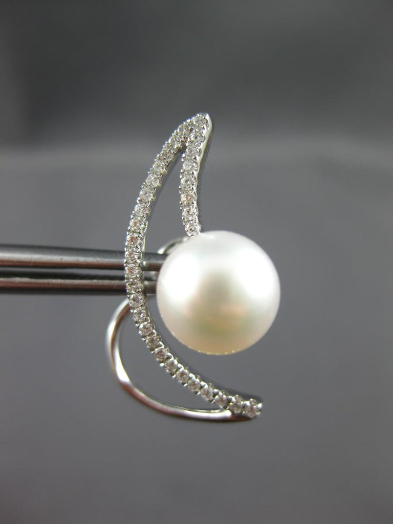 LARGE .36CT DIAMOND AAA SOUTH SEA PEARL 14K WHITE GOLD CRISS CROSS STUD EARRINGS