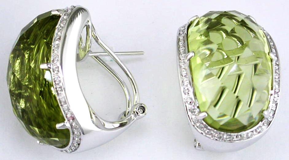 LARGE 37.33CT DIAMOND & AAA LEMON QUARTZ 14K WHITE GOLD CLIP ON HANGING EARRINGS