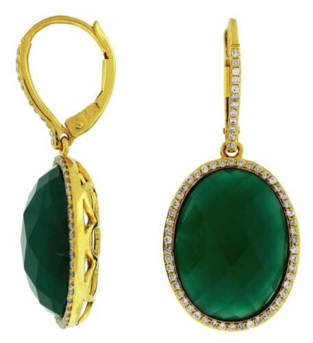 LARGE .38CT DIAMOND & AAA GREEN AGATE 14KT YELLOW GOLD 3D OVAL & ROUND EARRINGS