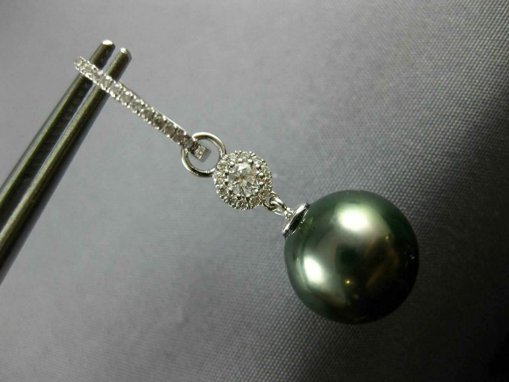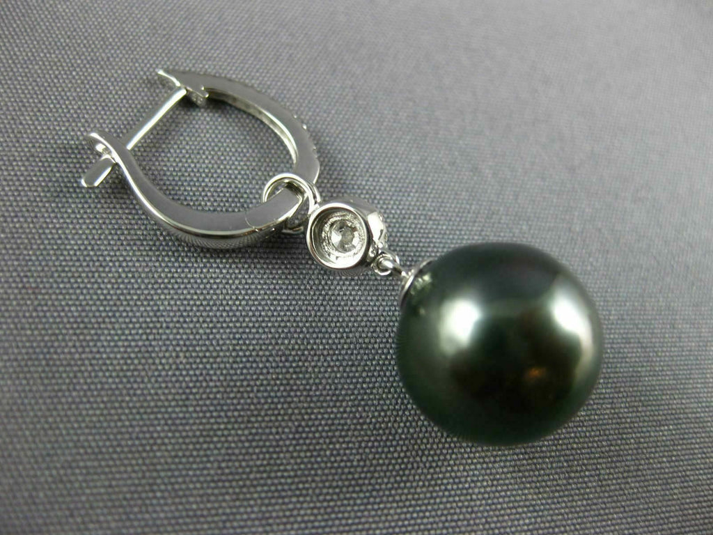 LARGE .38CT DIAMOND & AAA TAHITIAN PEARL 18KT WHITE GOLD HUGGIE HANGING EARRINGS