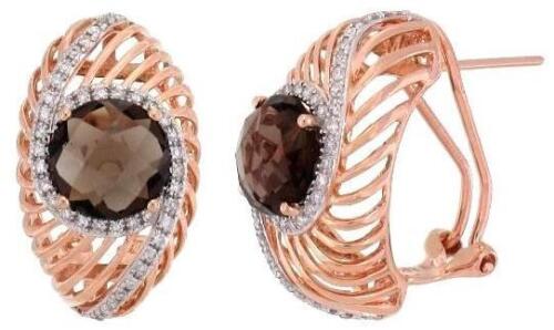 LARGE 4.31CT DIAMOND & AAA SMOKY TOPAZ 14K ROSE GOLD 3D CUSHION & ROUND EARRINGS