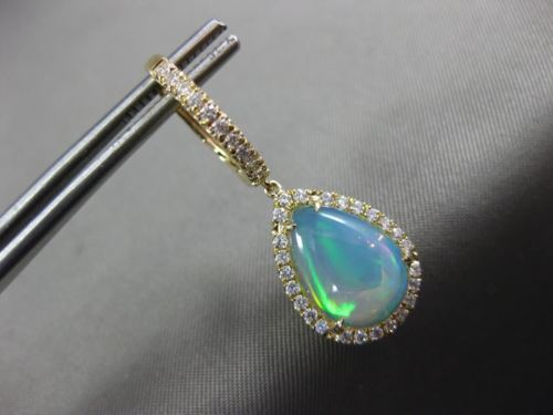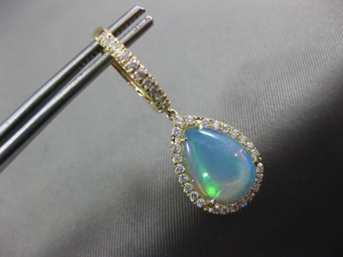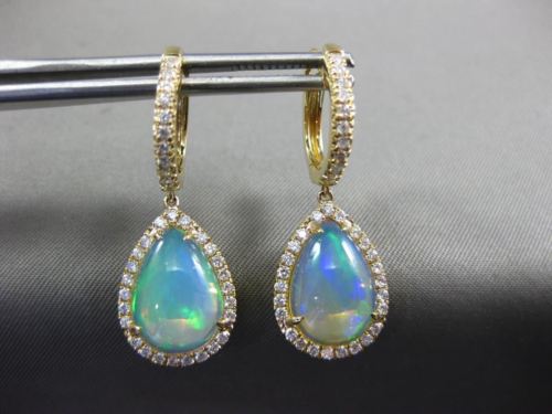 LARGE 14KT YELLOW GOLD HANGING EARRINGS. 3D CLASSIC TEAR DROP PEAR SHAPE DESIGN. DIAMONDS ARE F/G COLOR VSSI CLARITY .74 CARATS. AAA AUSTRALIAN OPALS ARE 3.82 CARATS. MEASURES 32mm x 12mm. WRITTEN APPRAISAL AVAILABLE. COMES IN A PRESENTABLE GIFT BOX.
