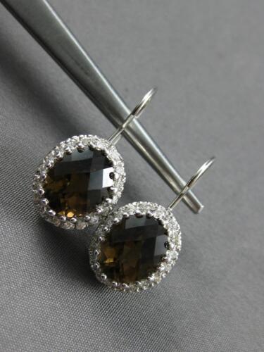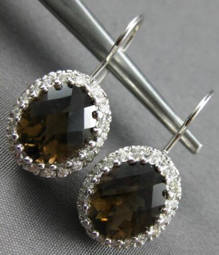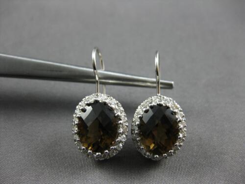 LARGE 4.60CT DIAMOND & AAA SMOKY TOPAZ 14K WHITE GOLD LEVERBACK HANGING EARRINGS