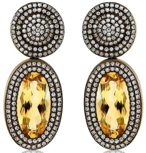 LARGE 4.62CT DIAMOND & AAA CITRINE 14K YELLOW & BLACK GOLD HALO HANGING EARRINGS
