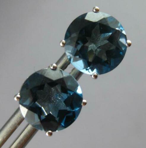 LARGE 14KT WHITE GOLD STUD EARRINGS. 3D CLASSIC DESIGN. AAA EXTRA FACETED ROUND LONDON BLUE TOPAZ ARE 4.80 CARATS. MEASURES 9mm WIDE.