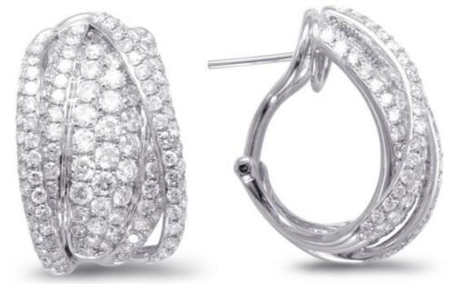 LARGE 4.85CT DIAMOND 14KT WHITE GOLD CRISS CROSS PAVE CLIP ON HANGING EARRINGS