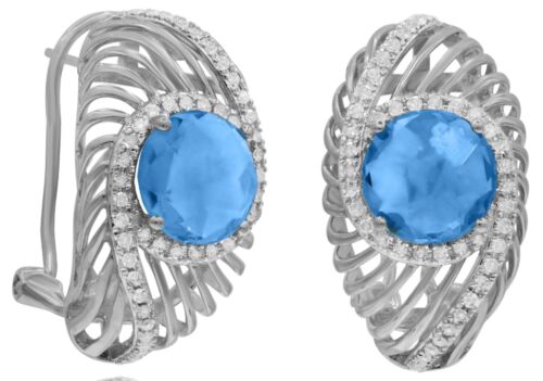 LARGE 4.92CT DIAMOND & AAA BLUE TOPAZ 14K WHITE GOLD 3D CUSHION & ROUND EARRINGS