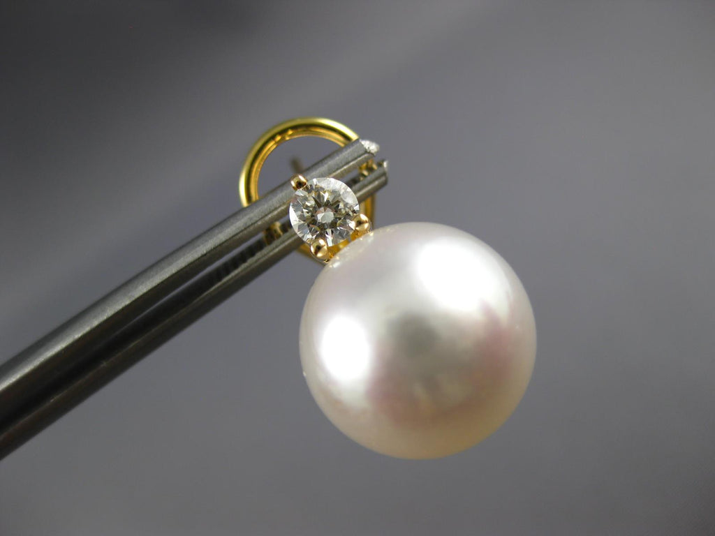 LARGE .40CT DIAMOND & AAA SOUTH SEA PEARL 18KT YELLOW GOLD 3D CLIP ON EARRINGS