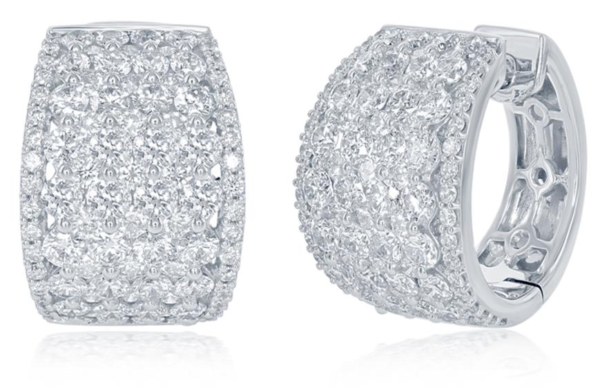 LARGE 4.32CT DIAMOND 14KT WHITE GOLD 3D INVISIBLE MULTI ROW HUGGIE HOOP EARRINGS