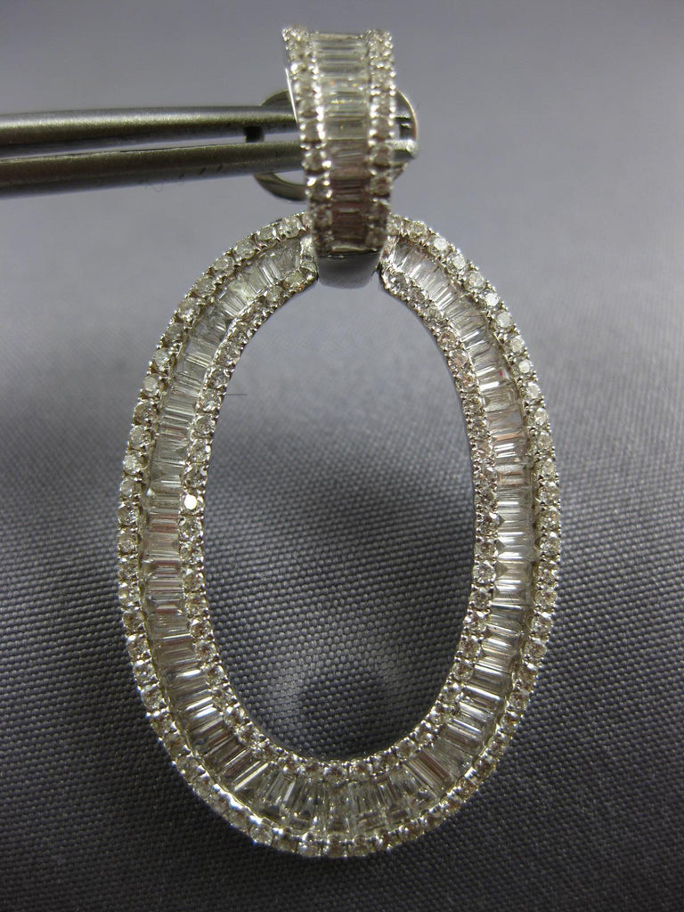 LARGE 4.34CT DIAMOND 18KT WHITE GOLD ROUND & BAGUETTE OPEN OVAL HANGING EARRINGS