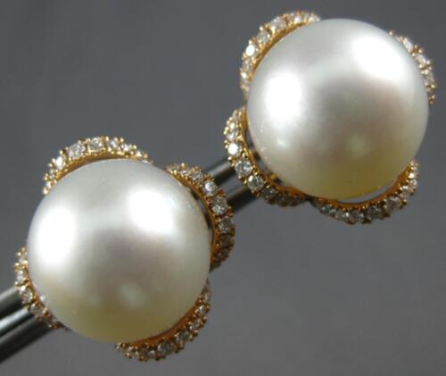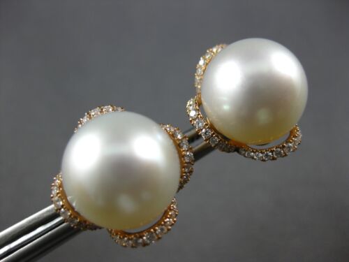 LARGE 18KT ROSE GOLD STUD EARRINGS. 3D FLOWER DESIGN. DIAMONDS ARE F/G COLOR, VSSI CLARITY .43 CARATS. FEATURES 11mm AAA SOUTH SEA PEARL. MEASURES 15.5mm X 11mm. WRITTEN APPRAISAL AVAILABLE. COMES IN A PRESENTABLE GIFT BOX.