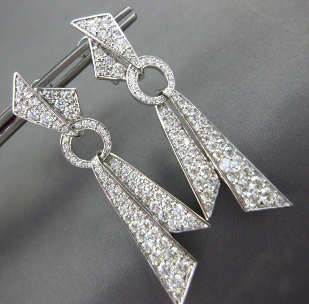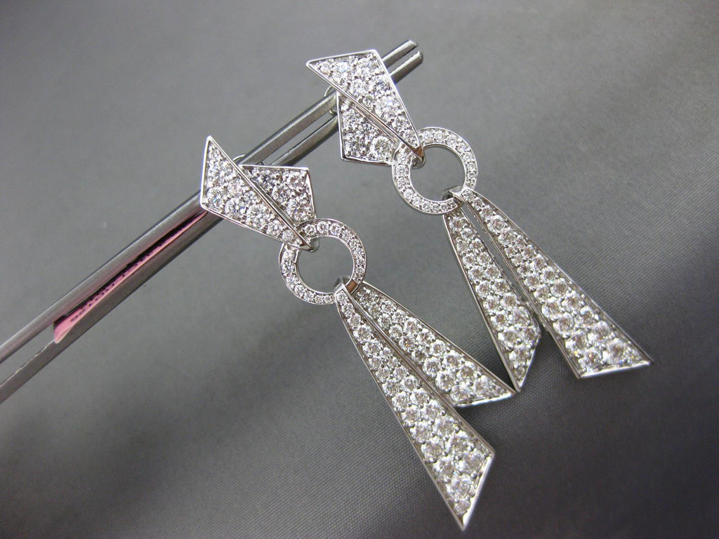 LARGE 4.61CT DIAMOND 18KT WHITE GOLD 3D MULTI ROW TRIANGULAR HANGING EARRINGS