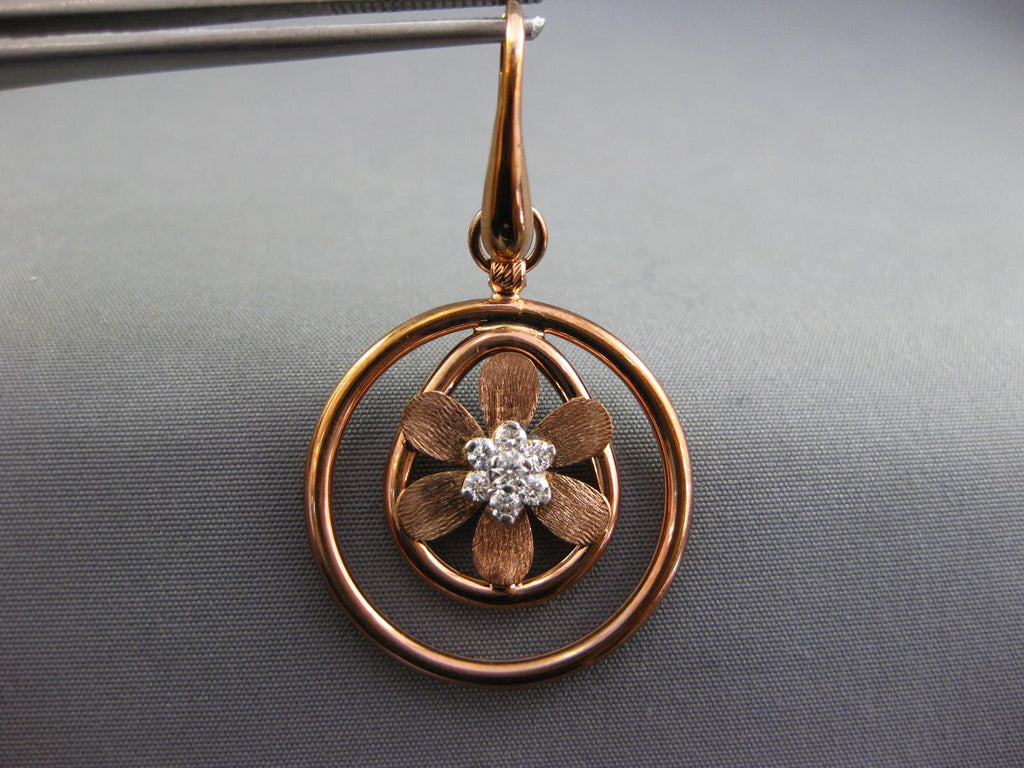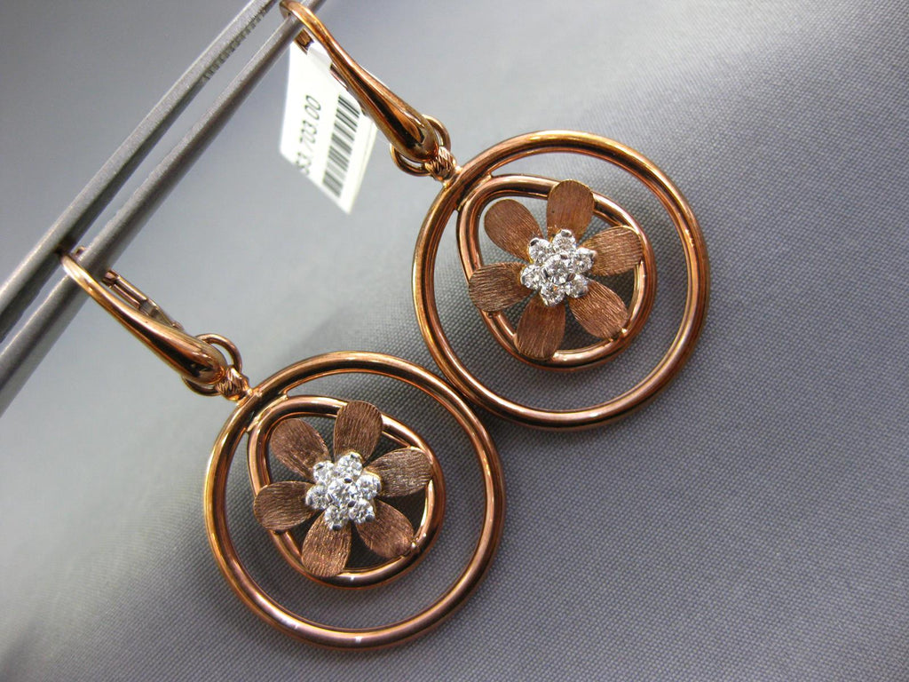 ESTATE LARGE 18KT ROSEGOLD LEVERBACK HANGING EARRINGS. 3D MATTE AND SHINYFLOWERDESIGN.DIAMONDS ARE F/G COLOR, VSSI CLARITY .46 CARATS.MEASURES 45mm X 25mm. WRITTEN APPRAISAL AVAILABLE. COMES IN A PRESENTABLE GIFT BOX.