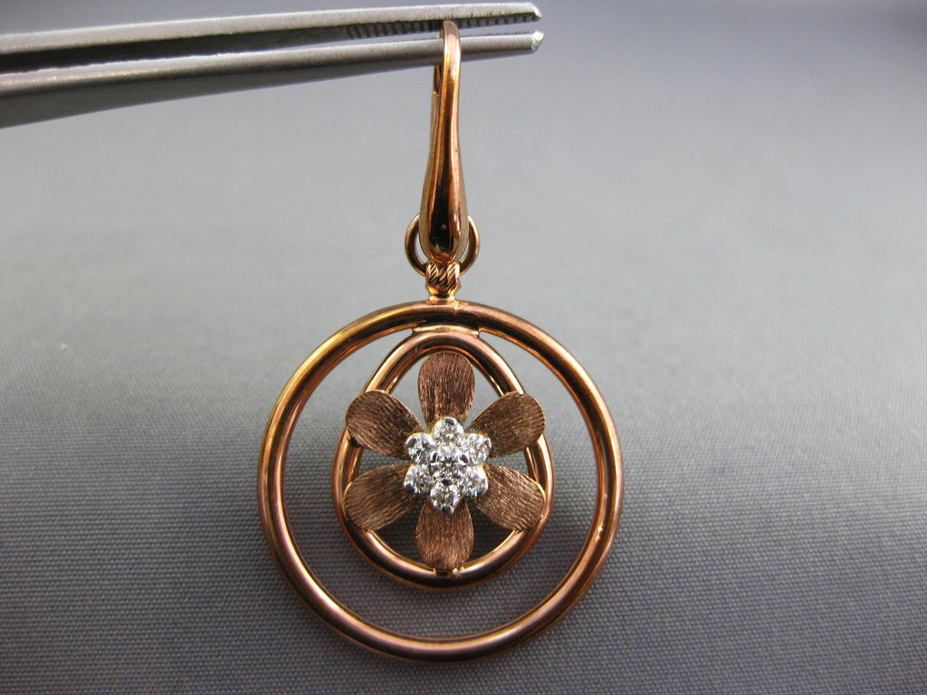 LARGE .46CT DIAMOND 18KT WHITE & ROSE GOLD MATTE & SHINY FLOWER HANGING EARRINGS