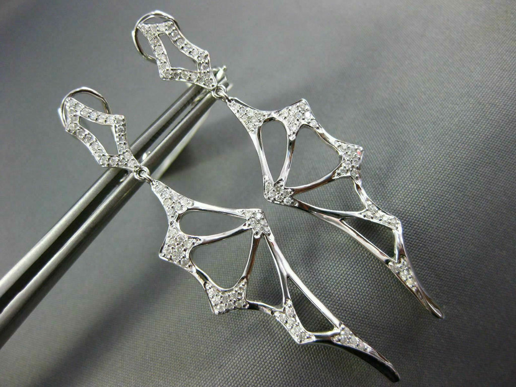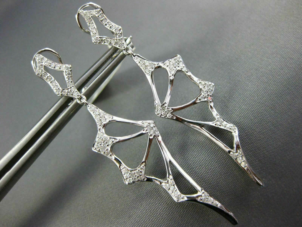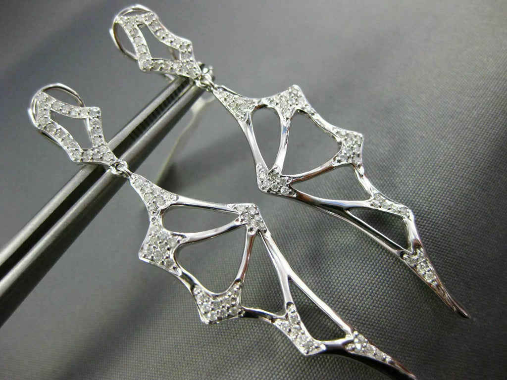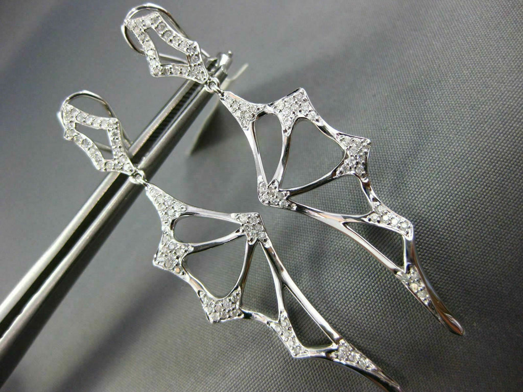LARGE .47CT DIAMOND 14KT WHITE GOLD HANDCRAFTED SPIDER WEB FUN HANGING EARRINGS