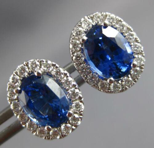 LARGE 18KT WHITE GOLD STUD EARRINGS. 3D CLASSIC HALO DESIGN. ROUND DIAMONDS ARE F/G COLOR, VSSI CLARITY .49 CARATS. AAA OVAL CEYLON SAPPHIRES ARE 3.46 CARATS. CEYLON SAPPHIRES MEASURE 8mm X 6mm. EARRINGS MEASURE 12mm X 10mm. WRITTEN APPRAISAL AVAILABLE. COMES IN A PRESENTABLE GIFT BOX.