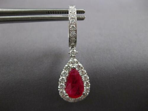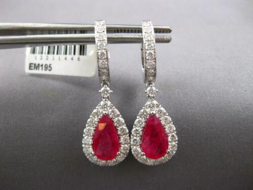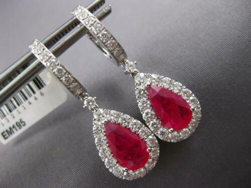 LARGE 5.46CT DIAMOND AAA RUBY 14KT WHITE GOLD PEAR SHAPE HUGGIE HANGING EARRINGS