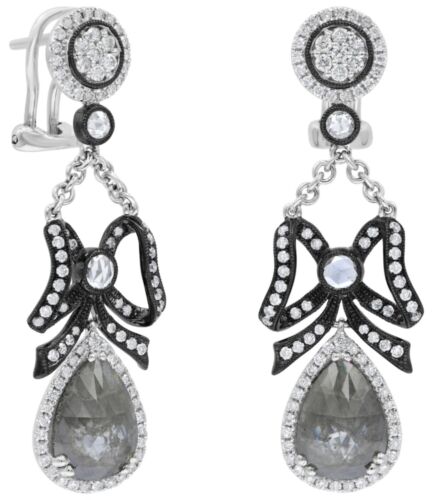 LARGE 5.83CT WHITE & ICE DIAMOND 18K WHITE & BLACK GOLD TEAR DROP LOVE EARRINGS