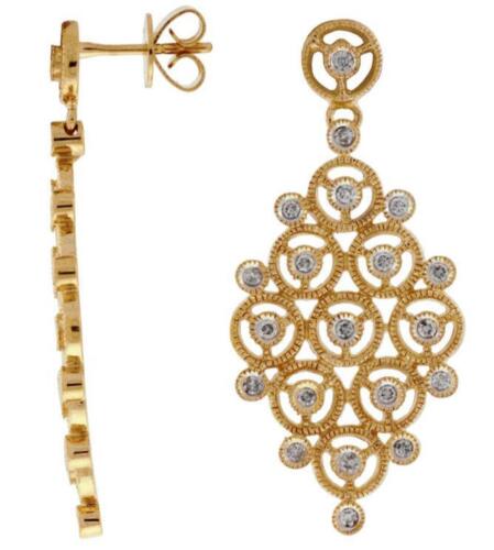 LARGE .50CT DIAMOND 14KT YELLOW GOLD FLORAL TEAR DROP FILIGREE HANGING EARRINGS