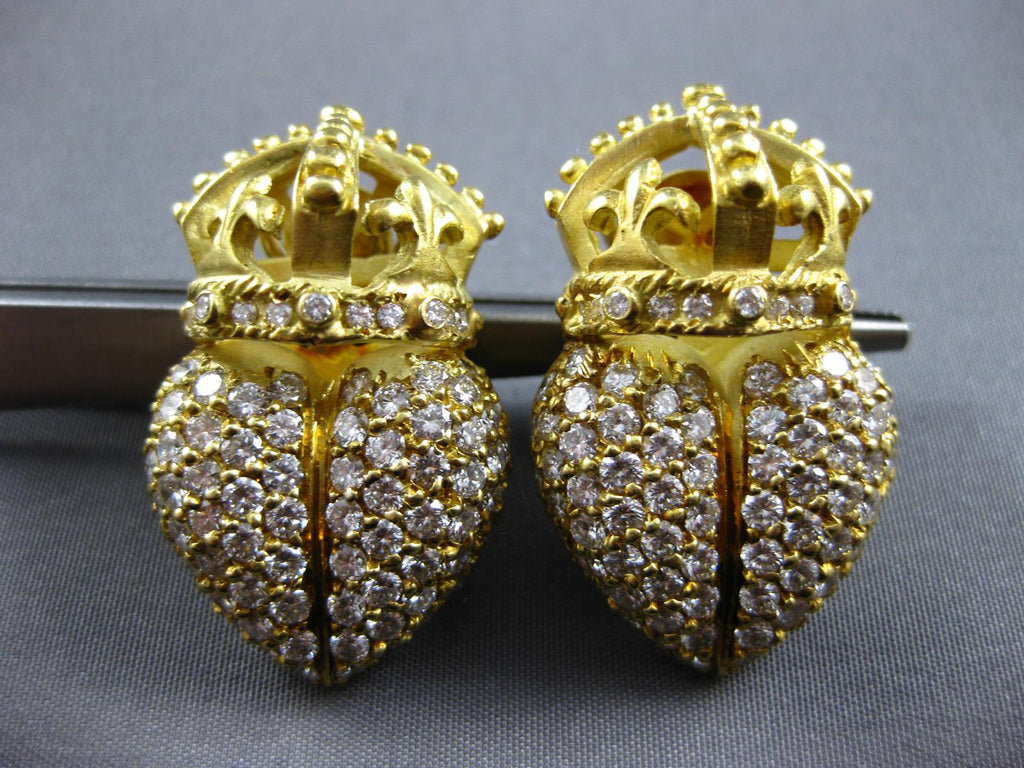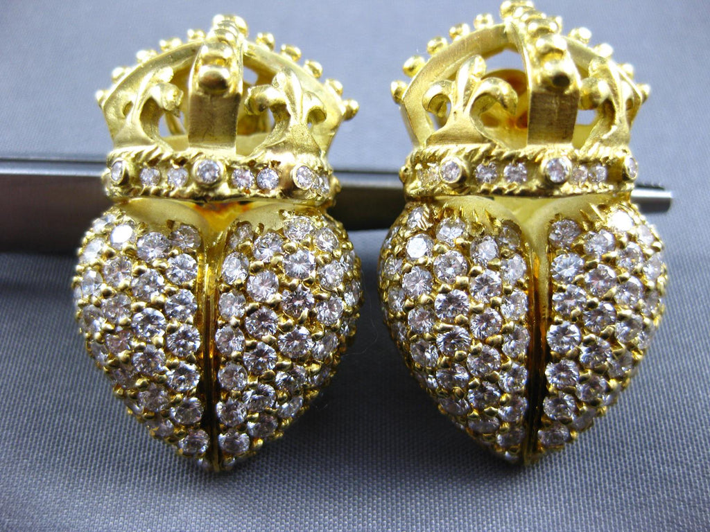 LARGE 5.0CT DIAMOND 18KT WHITE GOLD 3D HEART CROWN CLIP ON HANGING EARRINGS