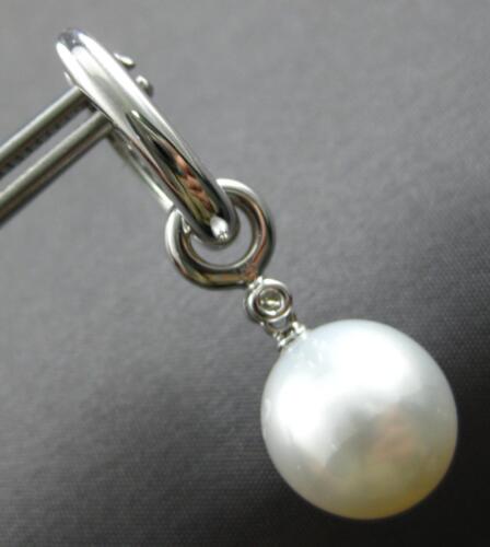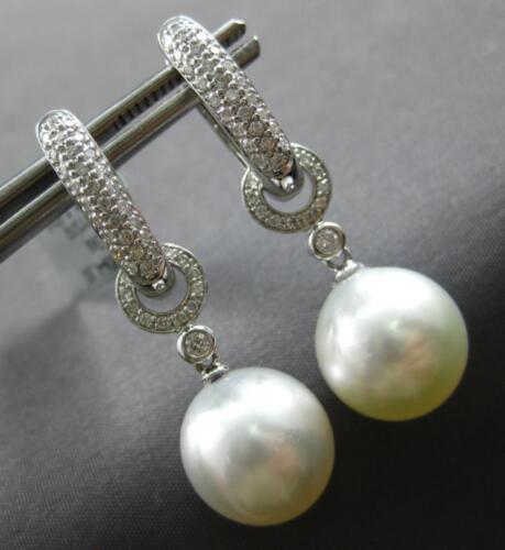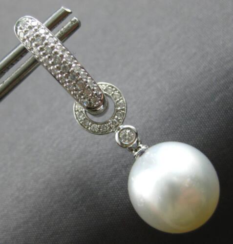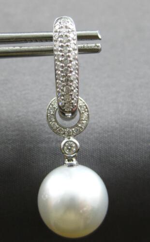LARGE .50CT DIAMOND & AAA SOUTH SEA PEARL 18K WHITE GOLD HUGGIE HANGING EARRINGS