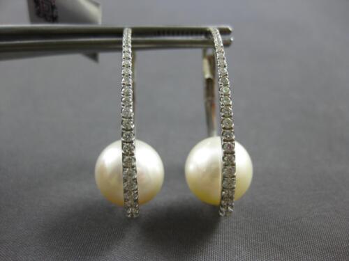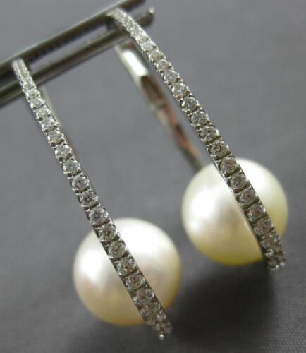 LARGE 18KT WHITE GOLD HOOP HANGING EARRINGS. 3D CLASSIC OVAL DESIGN. DIAMONDS ARE F/G COLOR, VSSI CLARITY .50 CARATS. FEATURES AAA SOUTH SEA PEARL. PEARL MEASURES 11mm WIDE. EARRINGS MEASURE 31mm X 11mm. WRITTEN APPRAISAL AVAILABLE. COMES IN A PRESENTABLE GIFT BOX.