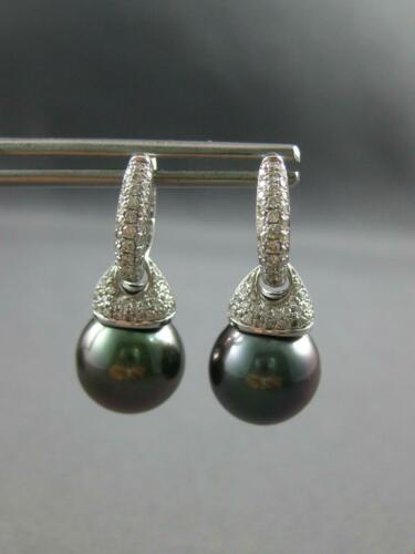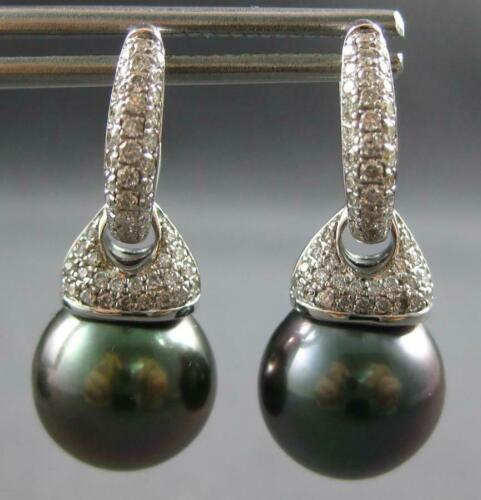LARGE 14KT WHITE GOLD FUN HUGGIE HANGING EARRINGS. 3D CLASSIC DESIGN. DIAMONDS ARE F/G COLOR, VSSI CLARITY .50 CARATS. FEATURES AAA TAHITIAN PEARLS. PEARLS MEASURE 11mm WIDE. EARRINGS MEASURE 25mm X 11mm. WRITTEN APPRAISAL AVAILABLE. COMES IN A PRESENTABLE GIFT BOX.