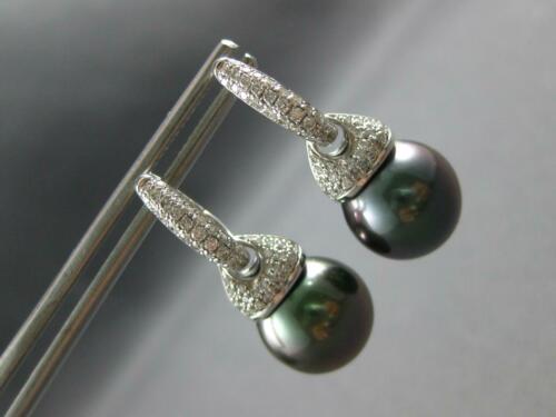 LARGE .50CT DIAMOND & AAA TAHITIAN PEARL 14KT WHITE GOLD HUGGIE HANGING EARRINGS