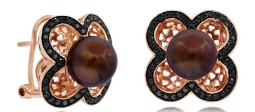 LARGE 14KT YELLOW GOLD CLIP ON EARRINGS. 3D FLOWER DESIGN. ROUND BLACK DIAMONDS ARE .52 CARATS. FEATURES AAA ROUND BROWN SOUTH SEA PEARL. WRITTEN APPRAISAL AVAILABLE. COMES IN A PRESENTABLE GIFT BOX.