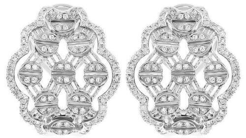 LARGE 14KT WHITE GOLD CLIP ON HANGING EARRINGS. 3D MULTI CIRCULAR CRISS CROSS FLOWER DESIGN. DIAMONDS ARE F/G COLOR, VSSI CLARITY .52 CARATS. WRITTEN APPRAISAL AVAILABLE. COMES IN A PRESENTABLE GIFT BOX.