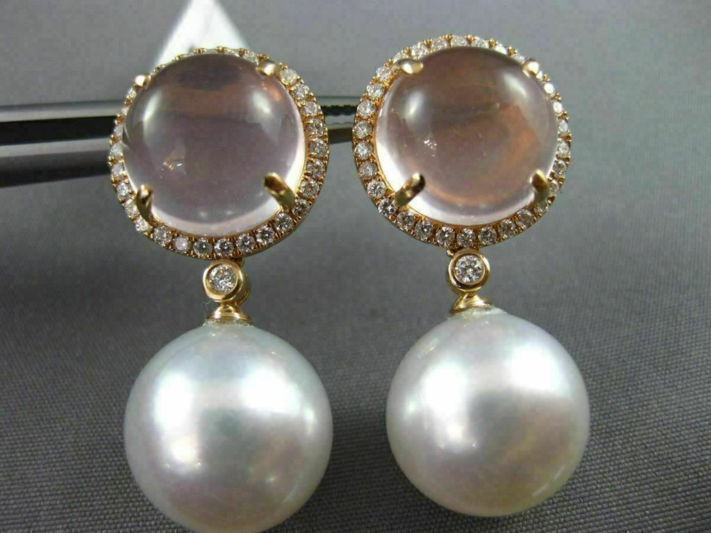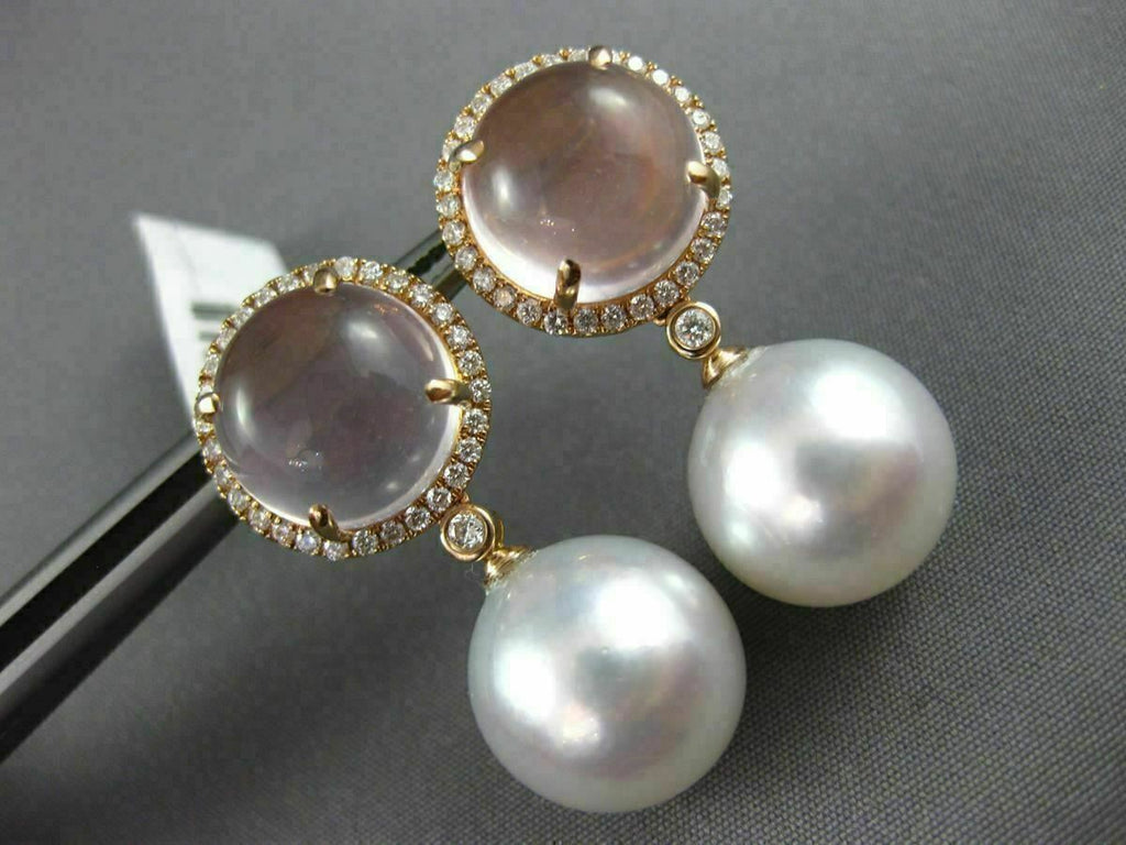 LARGE .52CT DIAMOND & AAA ROSE QUARTZ SOUTH SEA PEARL 18KT ROSE GOLD 3D EARRINGS