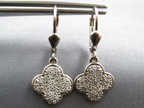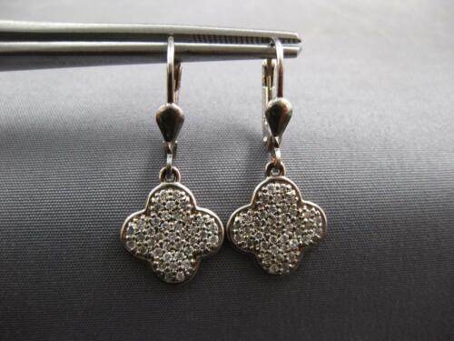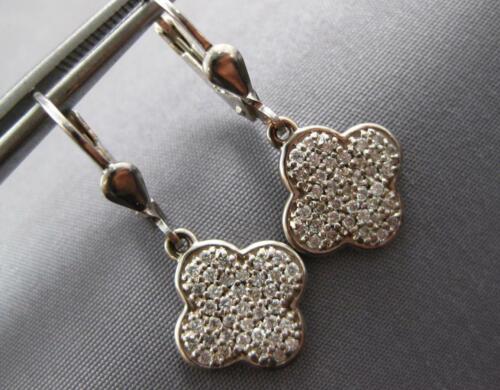 LARGE .55CT DIAMOND 14KT WHITE GOLD 3D 4 LEAF CLOVER CLASSIC LEVERBACK EARRINGS