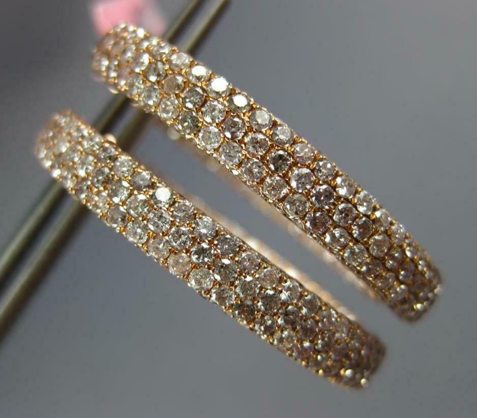 LARGE 6.08CT PINK DIAMOND 18KT ROSE GOLD MULTI ROW INSIDE OUT 3D HOOP EARRINGS