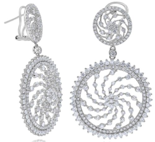 LARGE 6.11CT DIAMOND 18K WHITE GOLD FLOWER MULTI SWIRL CIRCULAR HANGING EARRINGS