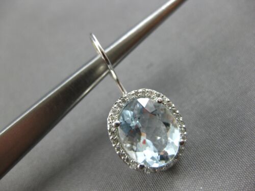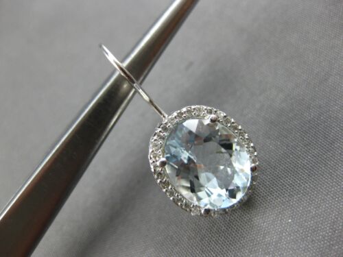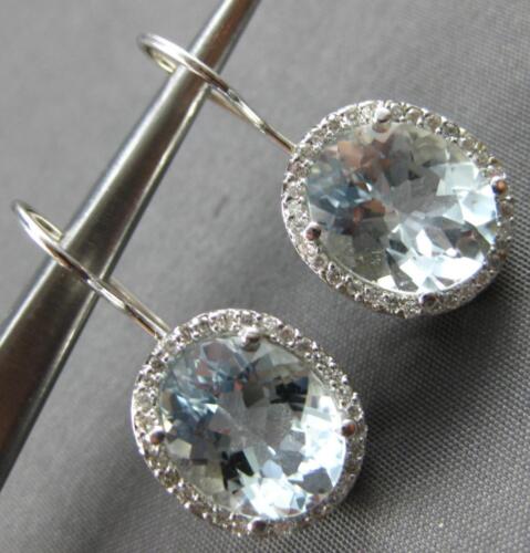 LARGE 14KT WHITE GOLD LEVERBACK HANGING EARRINGS. 3D CLASSIC HALO FILIGREE DESIGN. ROUND DIAMONDS ARE F/G COLOR, VSSI CLARITY .33 CARATS. AAA EXTRA FACETED OVAL AQUAMARINES ARE 6.0 CARATS. MEASURES 25mm X 12mm. WRITTEN APPRAISAL AVAILABLE. COMES IN A PRESENTABLE GIFT BOX.