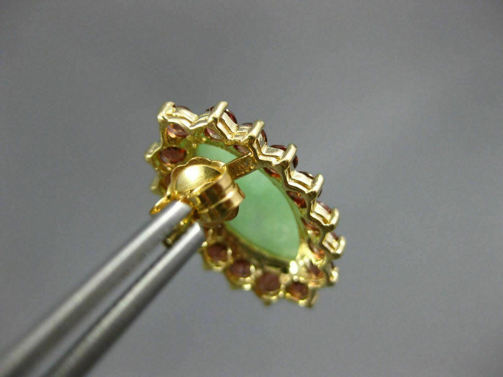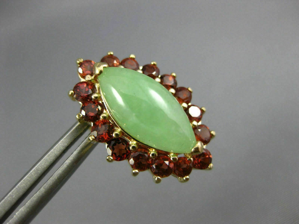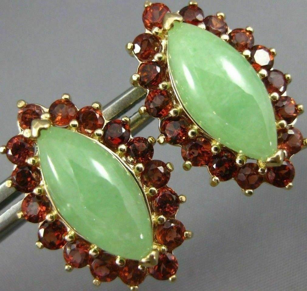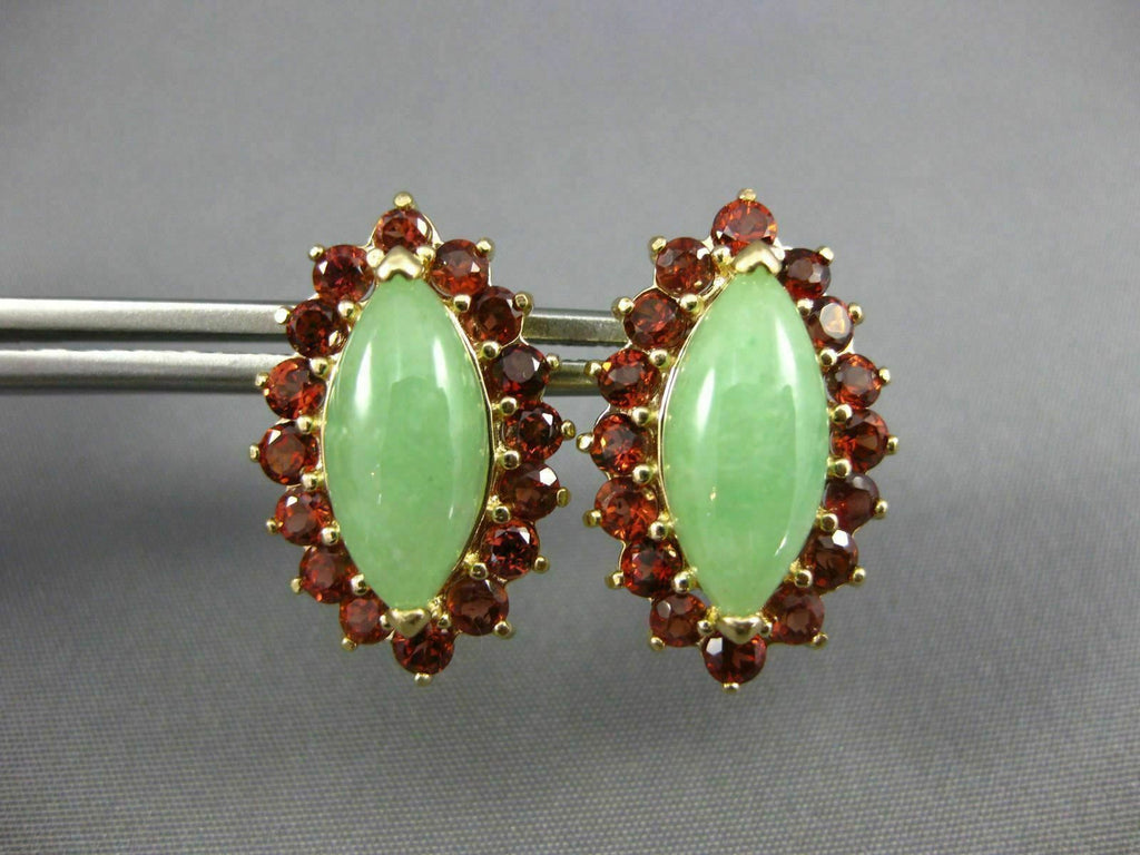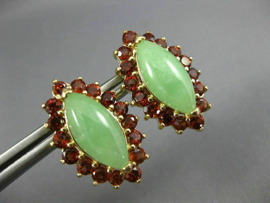 LARGE 6.40CT AAA JADE & GARNET 14KT YELLOW GOLD 3D MARQUISE STUD EARRINGS #26559