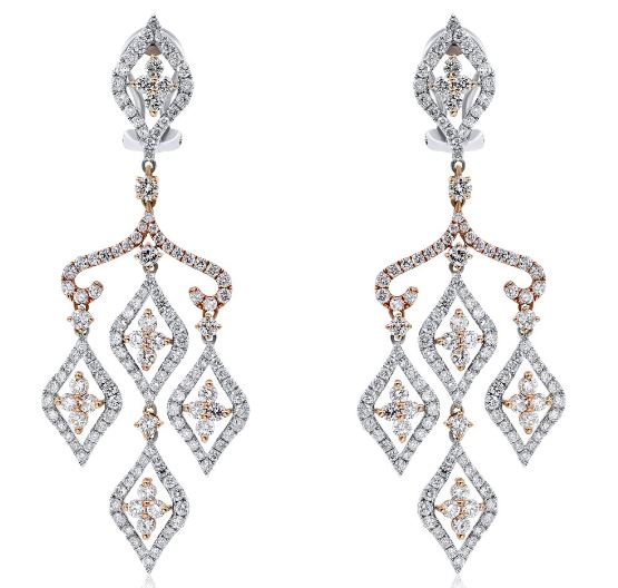 LARGE 6.80CT DIAMOND 18KT 2 TONE GOLD 3D MULTI LEAF CHANDELIER HANGING EARRINGS
