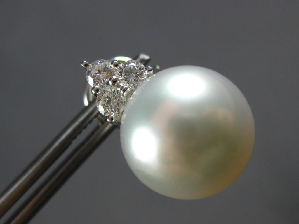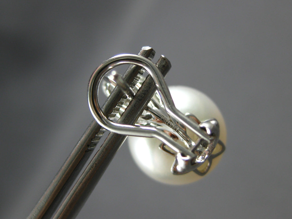 LARGE .60CT DIAMOND & AAA SOUTH SEA PEARL 18KT WHITE GOLD CLIP ON STUD EARRINGS