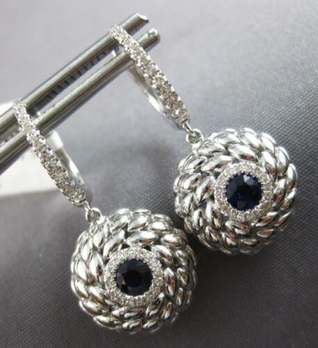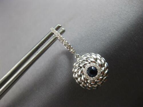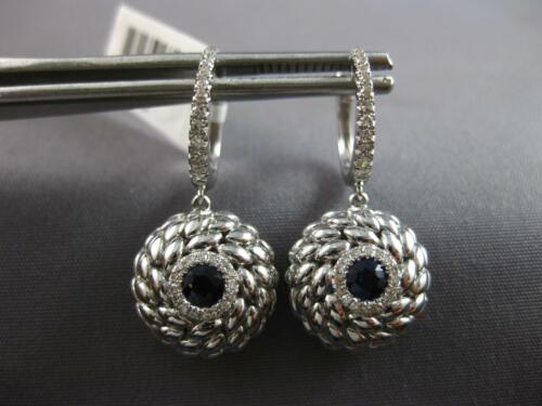 LARGE .61CT DIAMOND & AAA SAPPHIRE 14KT WHITE GOLD ROUND FLORAL HANGING EARRINGS