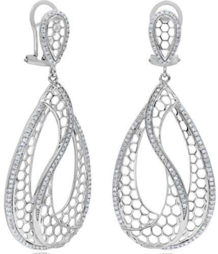 LARGE .62CT DIAMOND 14KT WHITE GOLD 3D DOUBLE SWIRL TEAR DROP HANGING EARRINGS
