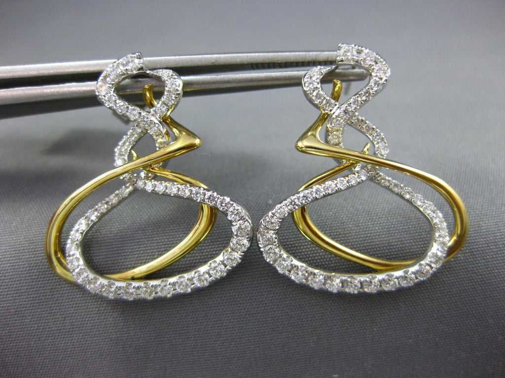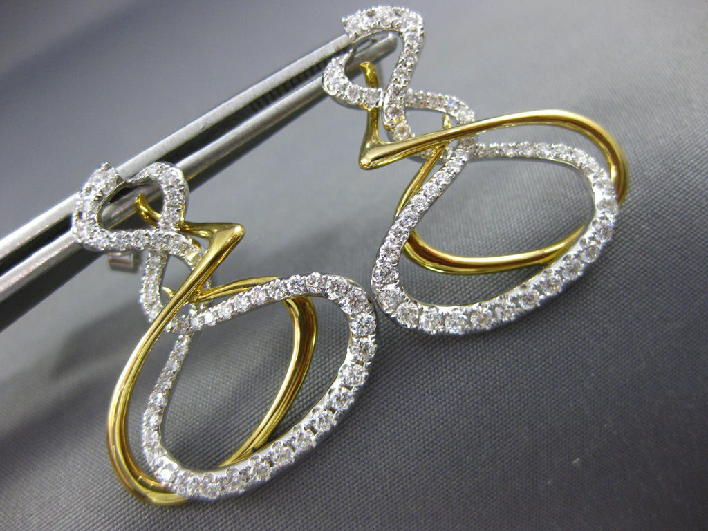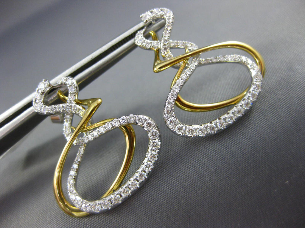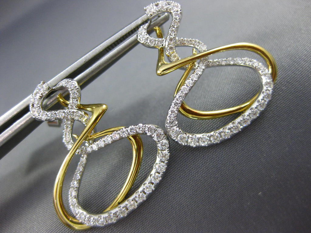 LARGE .63CT DIAMOND 18K 2 TONE GOLD MULTI ROW INFINITY OVAL FUN HANGING EARRINGS