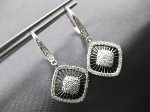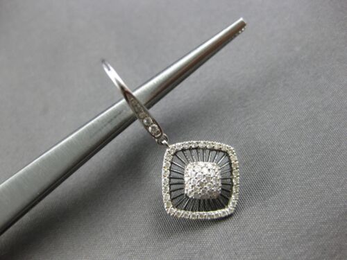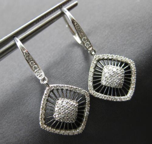 LARGE .66CT DIAMOND 14K WHITE GOLD SQUARE GEOMETRICAL LEVERBACK HANGING EARRINGS