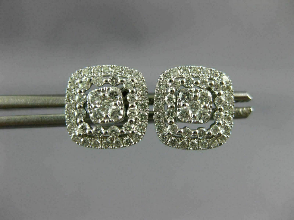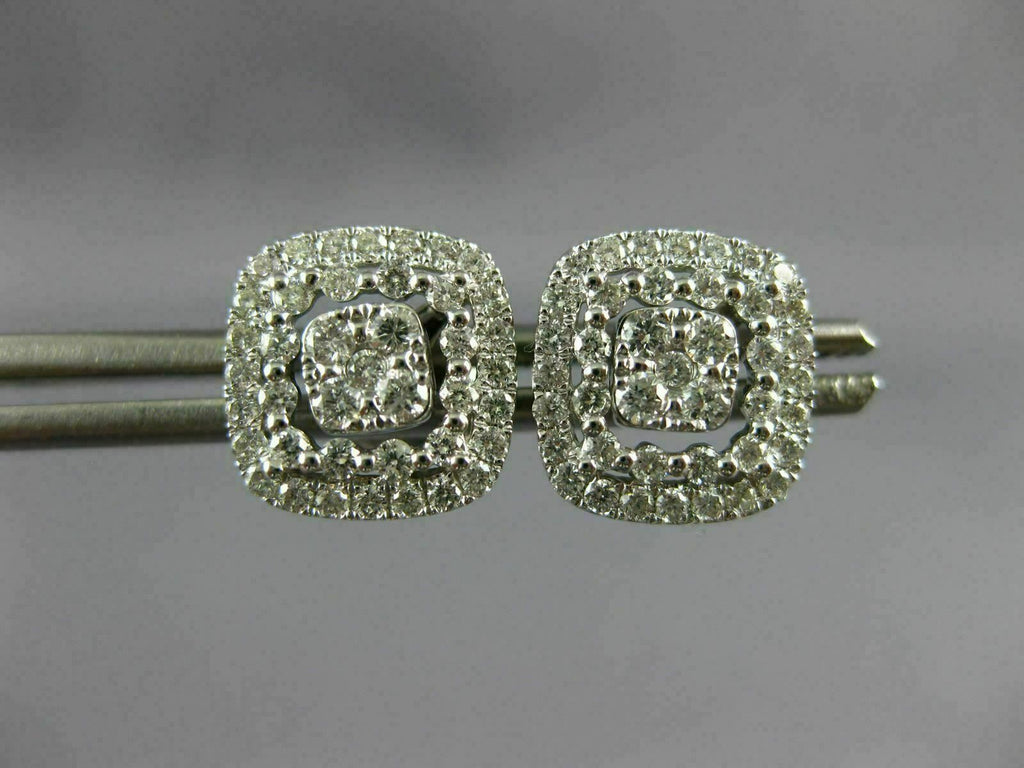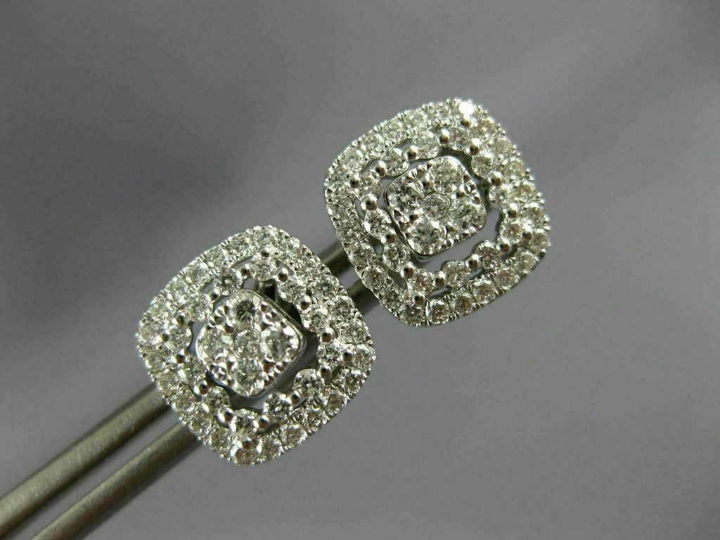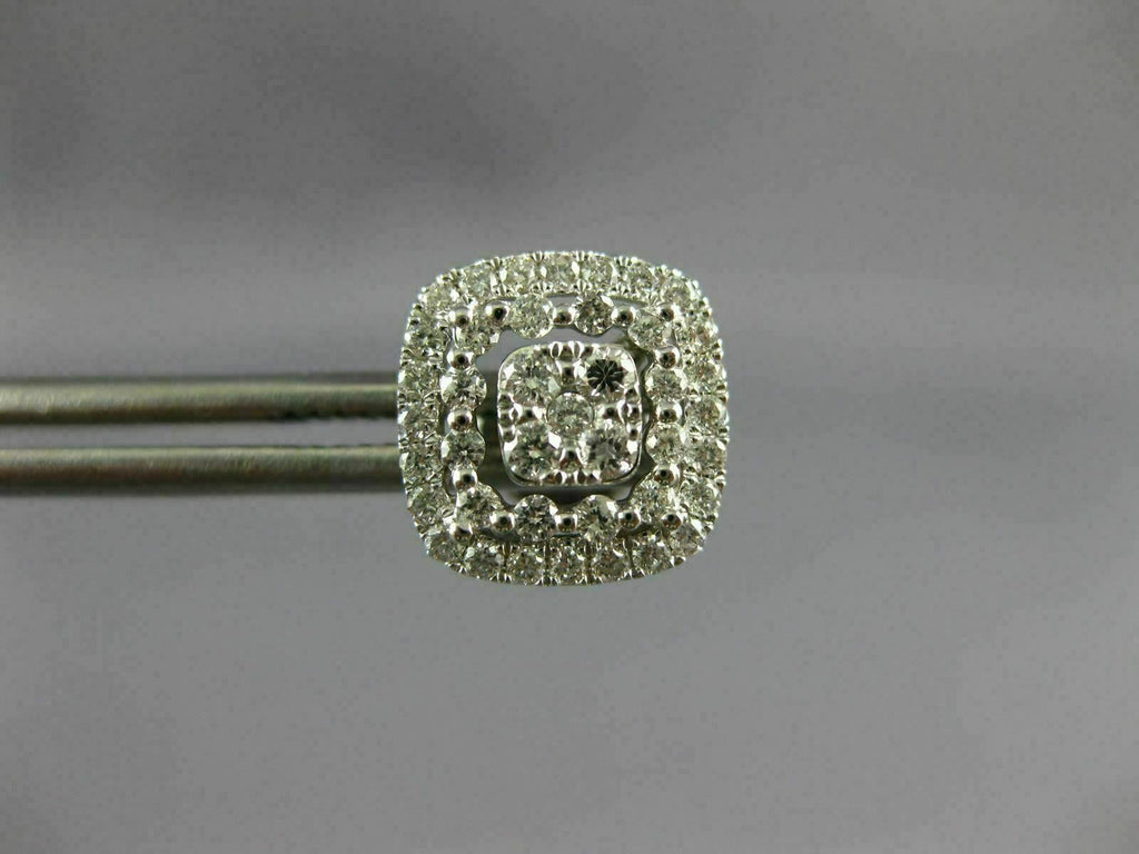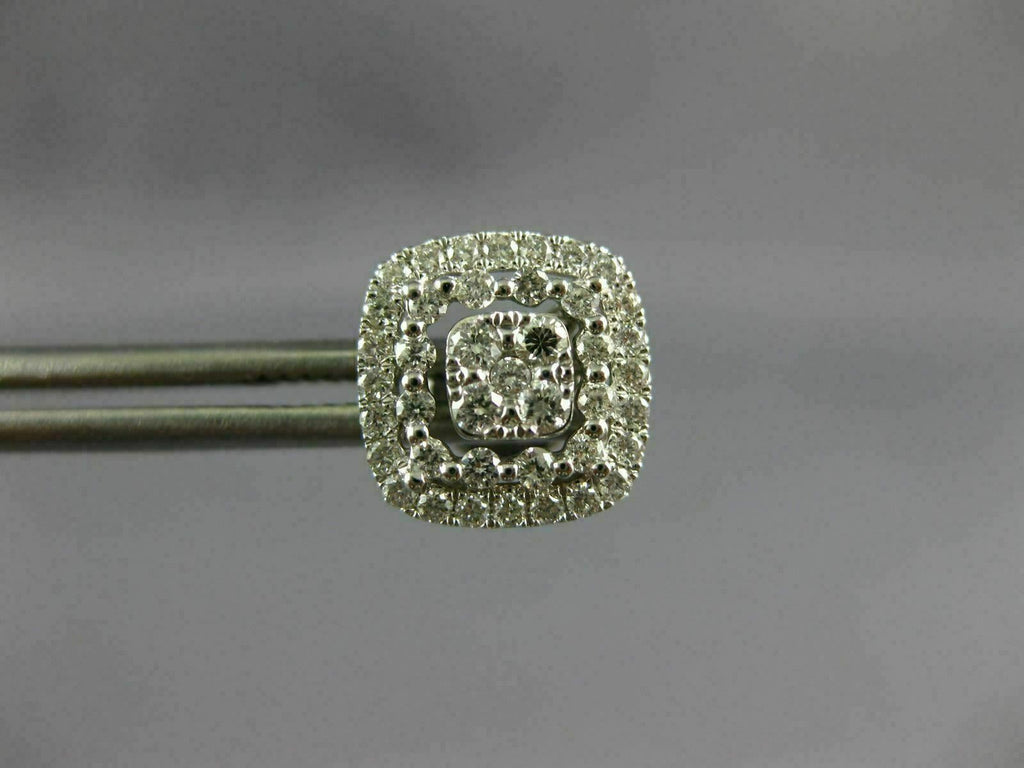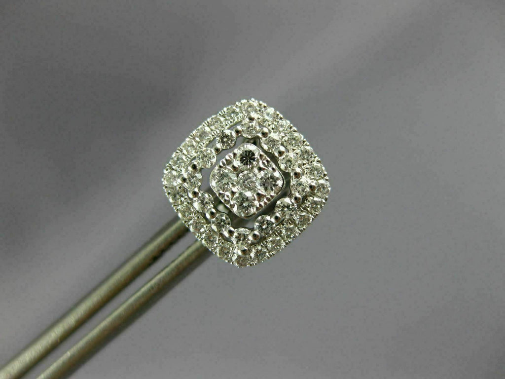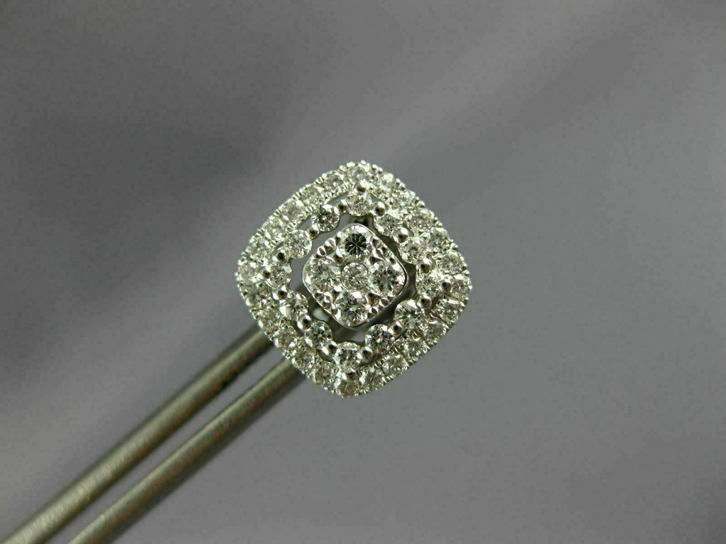 LARGE .67CT DIAMOND 18KT WHITE GOLD 3D SQUARE HALO CLUSTER STUD JACKET EARRINGS